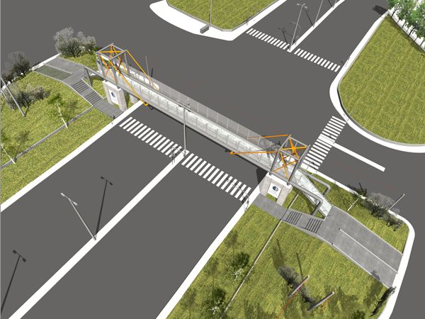 Το έργο περιλαµβάνει την κατασκευή πεζογέφυρας µε σύγχρονες προδιαγραφές και την ανάπλαση– διαµόρφωση του περιβάλλοντος χώρου για την πρόσβαση στην πεζογέφυρα Ειδικότερα η πεζογέφυρα θα είναι ένας σύµµικτος Φορέας (οπλισµένου σκυροδέµατος και δοµικού χάλυβα), συνολικού µήκους L=31.10m και πλάτους B=2.40m. Θα κατασκευαστούν δύο ακρόβαθρα Α1 & Α2 που το καθένα θα περιλαµβάνει ένα κλιµακοστάσιο και ένα πυρήνα ανελκυστήρα, εξασφαλίζοντας άµεση και ευχερή πρόσβαση σε πεζούς, ΑΜΕΑ και ευπαθείς οµάδες πληθυσµού (υπερήλικες, µητέρες). Ο περιβάλλον χώρος θα περιλαµβάνει πεζόδροµους πρόσβασης µε πρόβλεψη επίσης για ΑΜΕΑ µε την κατασκευή ραµπών και όδευση τυφλών, µε παρτέρια πρασίνου ενδιάµεσα και ηλεκτροφωτισµό.