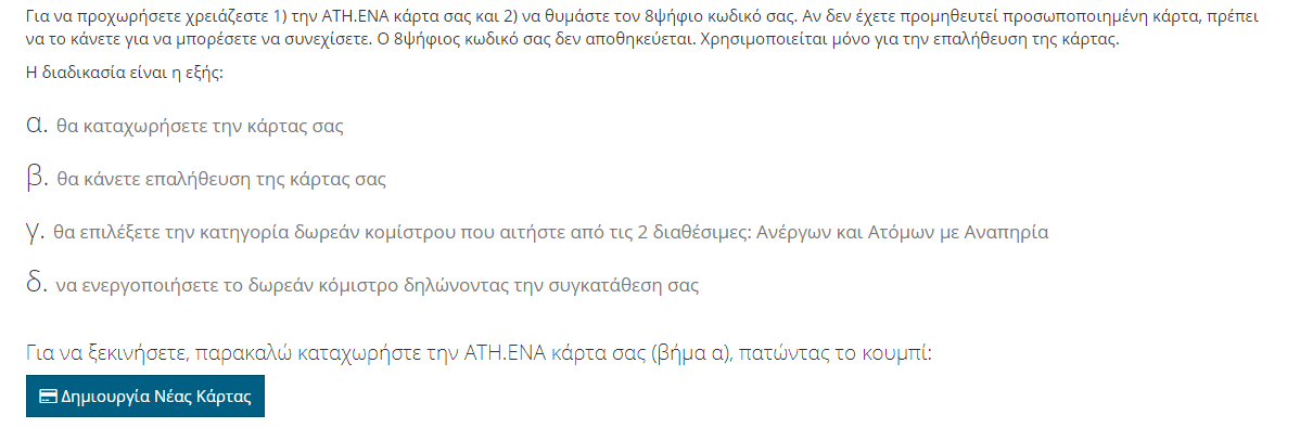 Άνεργοι και ΑΜΕΑ που έχουν ήδη στα χέρια τους προσωποποιημένη Ath.ena Card, μπορούν να ενεργοποιήσουν τις δωρεάν μετακινήσεις ως εξής:
