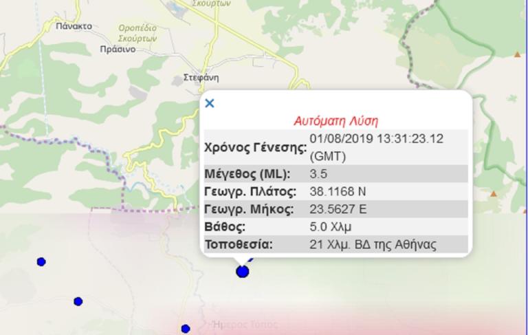 Σεισμός σημειώθηκε, ο οποίος έγινε αισθητός σε πολλές περιοχές,. μεταξύ των οποίων και η Αθήνα. Σύμφωνα με το Γεωδυναμικό Ινστιτούτο ο σεισμός ήταν της τάξεως των 3,5 βαθμών της κλίμακας Ρίχτερ και είχε εστιακό βάθος 5 χιλιόμετρα.