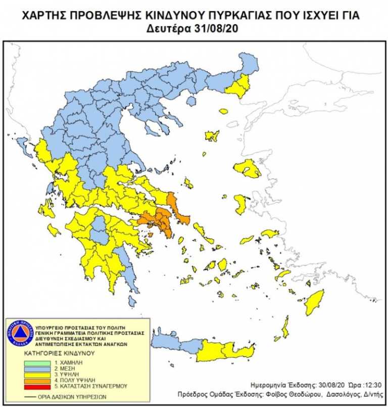 Ο κίνδυνος πυρκαγιάς είναι πολύ υψηλός για αύριο, σε Αττική και Εύβοια, σύμφωνα με το χάρτη πρόβλεψης της γενικής γραμματείας Πολιτικής Προστασίας.