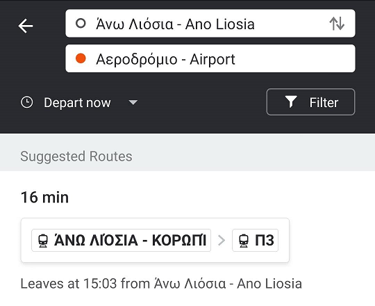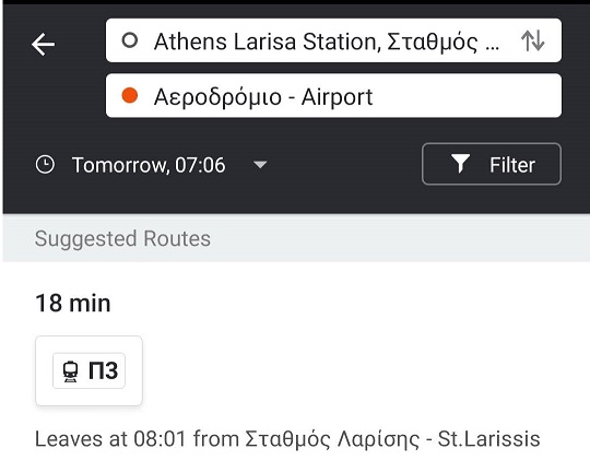Τα δρομολόγια πάντως που παρουσιάζει η εφαρμογή στις γραμμές Πειραιάς – Κιάτο και Αθήνα – Χαλκίδα είναι σωστά, ενώ το ίδιο συμβαίνει και για τα δρομολόγια Αεροδρόμιο – Κιάτο απευθείας ή μέσω μετεπιβίβασης.